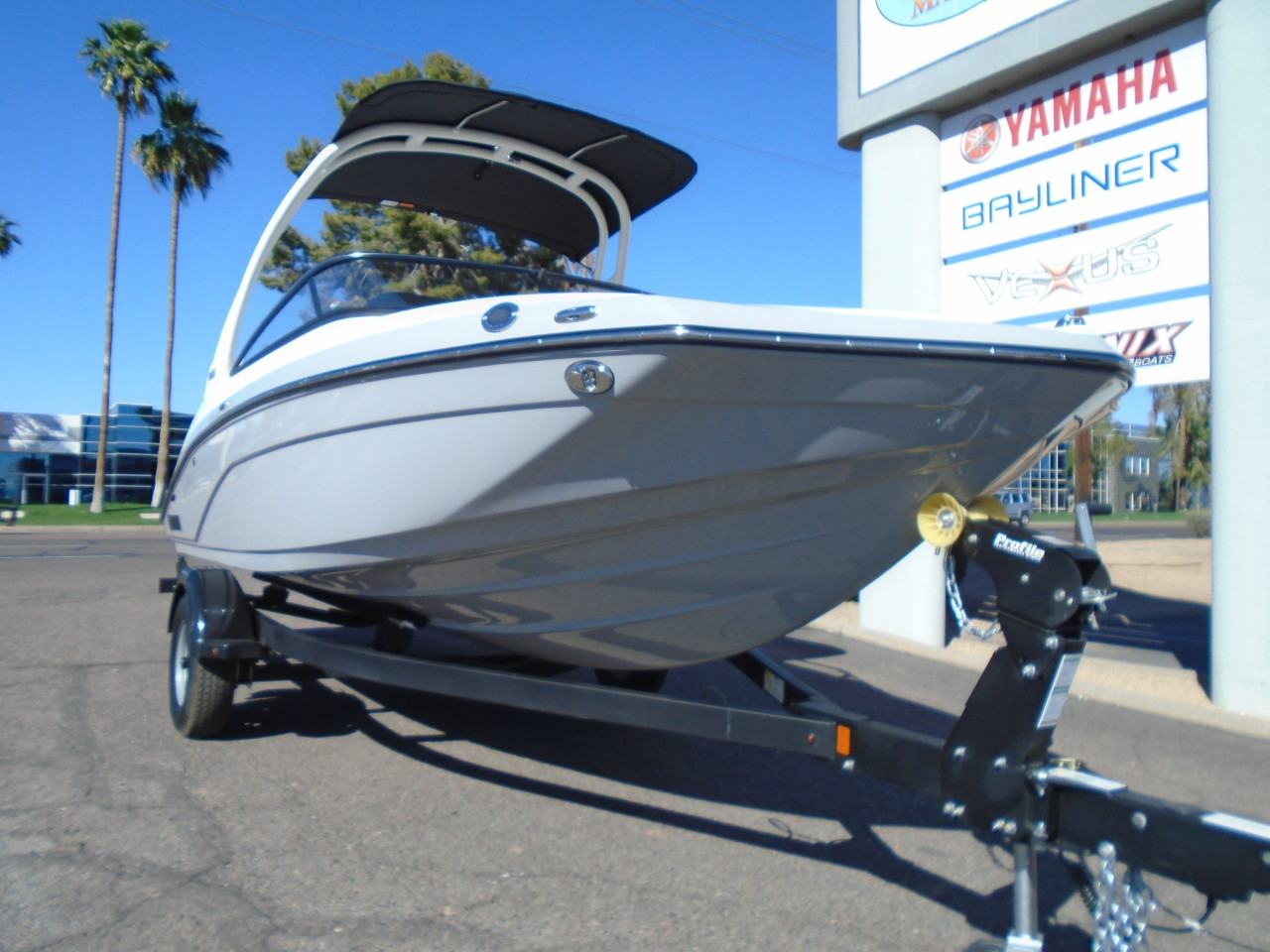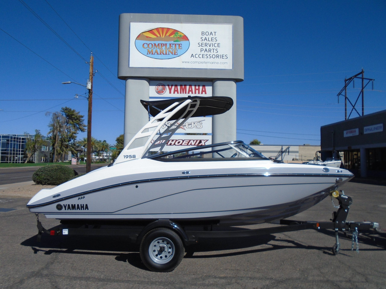 2026 Yamaha 195S. This is Yamaha’s premium offering in a 19’ size, It offers luxury and performance and is powered by a Supercharged Yamaha 250 HP SVHO Marine Jet. It’s compact size makes it easy to tow and store.